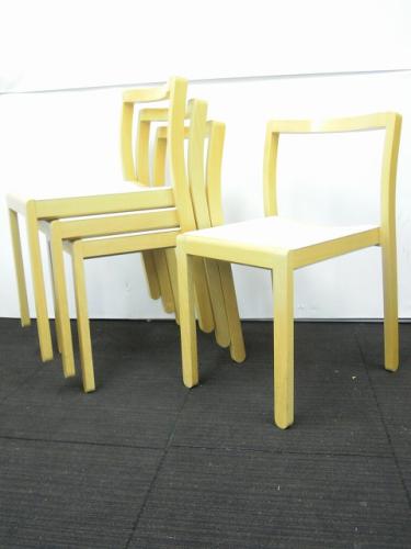 【8脚入荷!状態良好!】内田洋行製 MW-100シリーズ 木製ミーティングチェア ウレタンレザー張り ヌード×ホワイト 藤森泰司デザイン 【会議チェア】- 川崎店